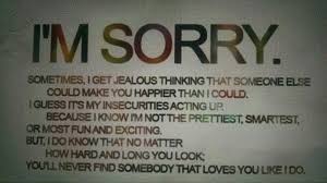 You being my dearest friend. I m sorry please forgive me thank you i love you. Forgive me i m sorry love. It s a character flaw in me and has nothing to do with you.
